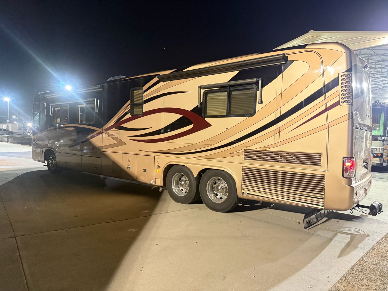 2005 Monaco Executive 43PDQ cummins ISM diesel 500HP, air ride, three roof airs with heat pumps. 4 slide outs, washer dryer combo, king size bed, closet and lots of wardrobe storage. Two extra chairs for the dinette.