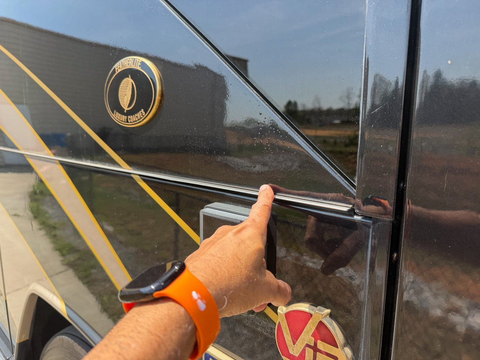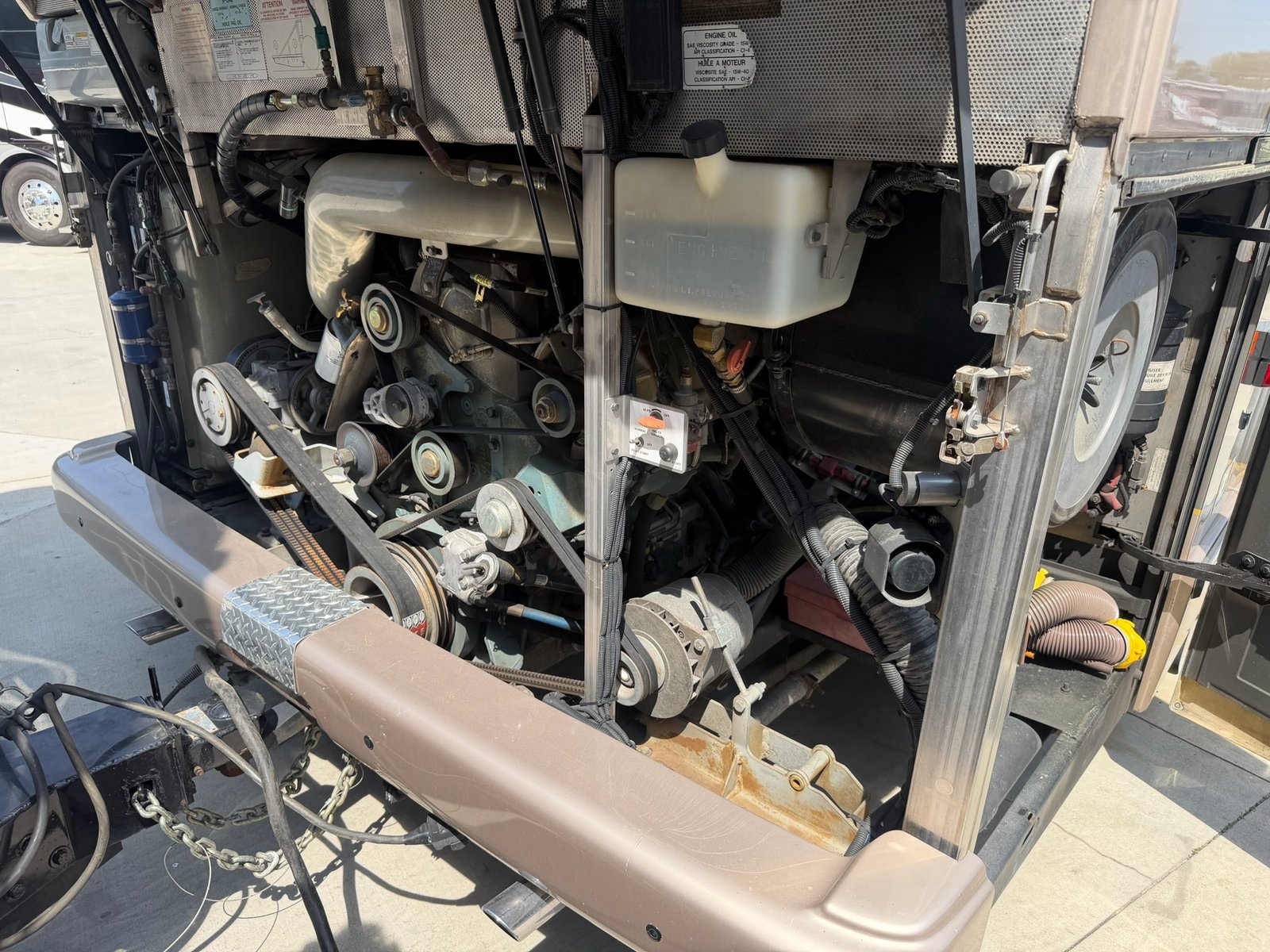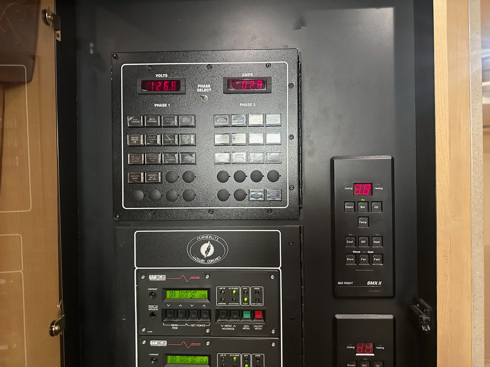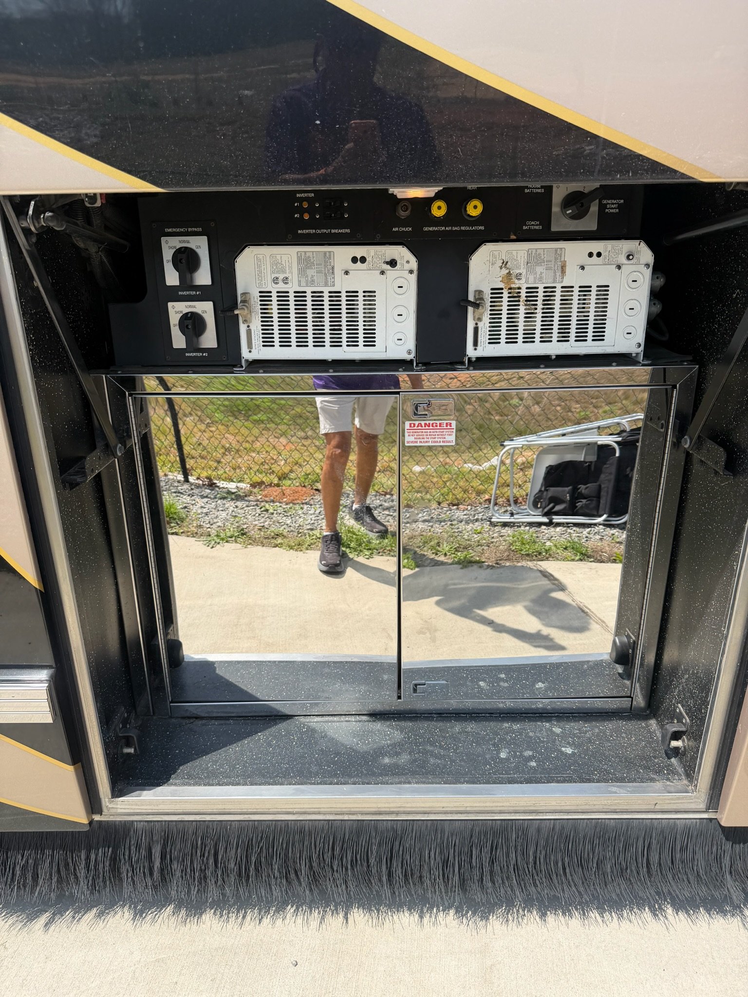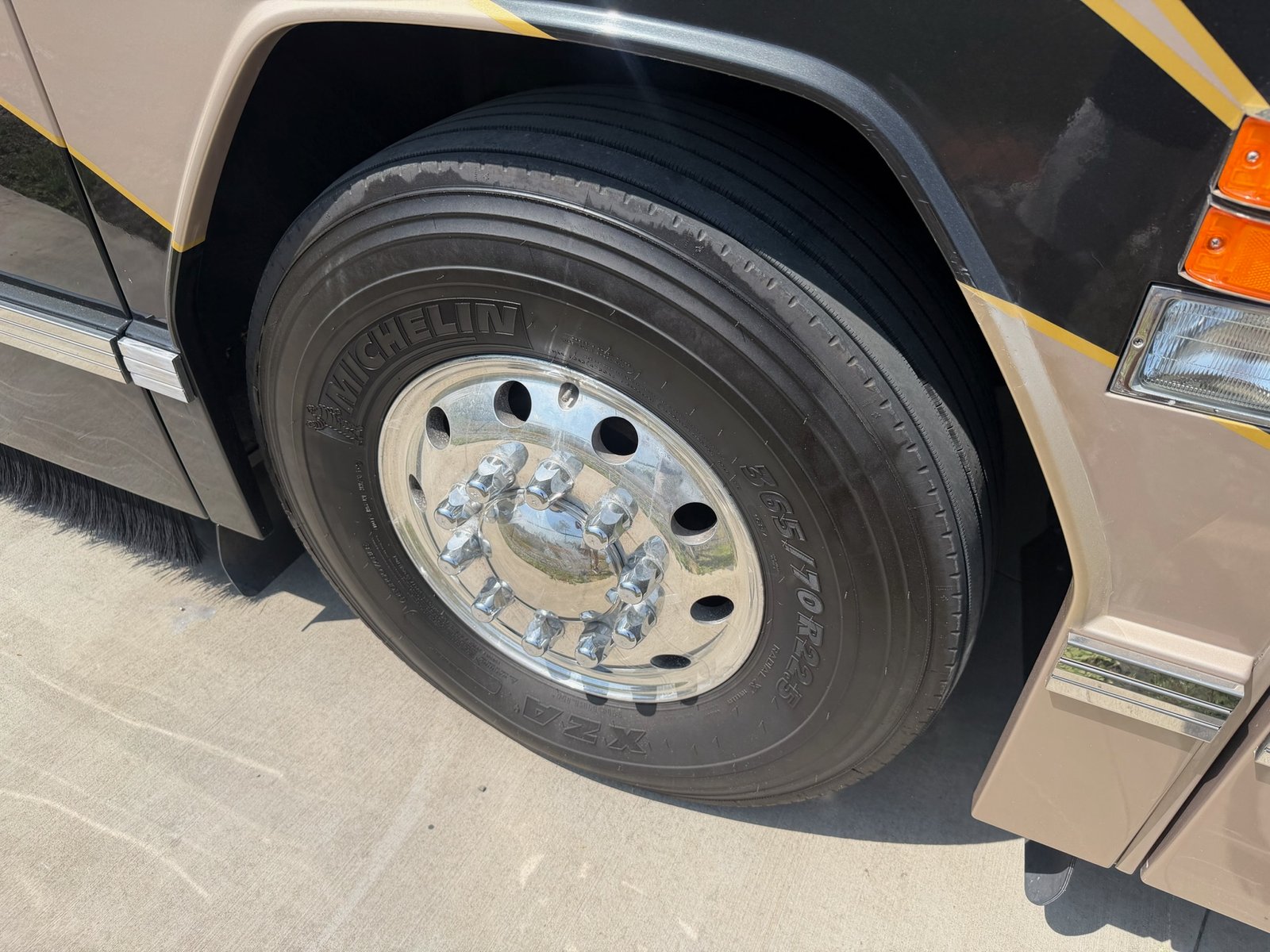 This is absolutely beautiful. Featherlite conversion Bus has low miles and a matching Featherlite aluminum stacker trailer. It’s got a double slide floor plan with leather everywhere in excellent condition, as well as stunning tile flooring and custom grout. Fiber optic accent lights and a custom tiled shower.