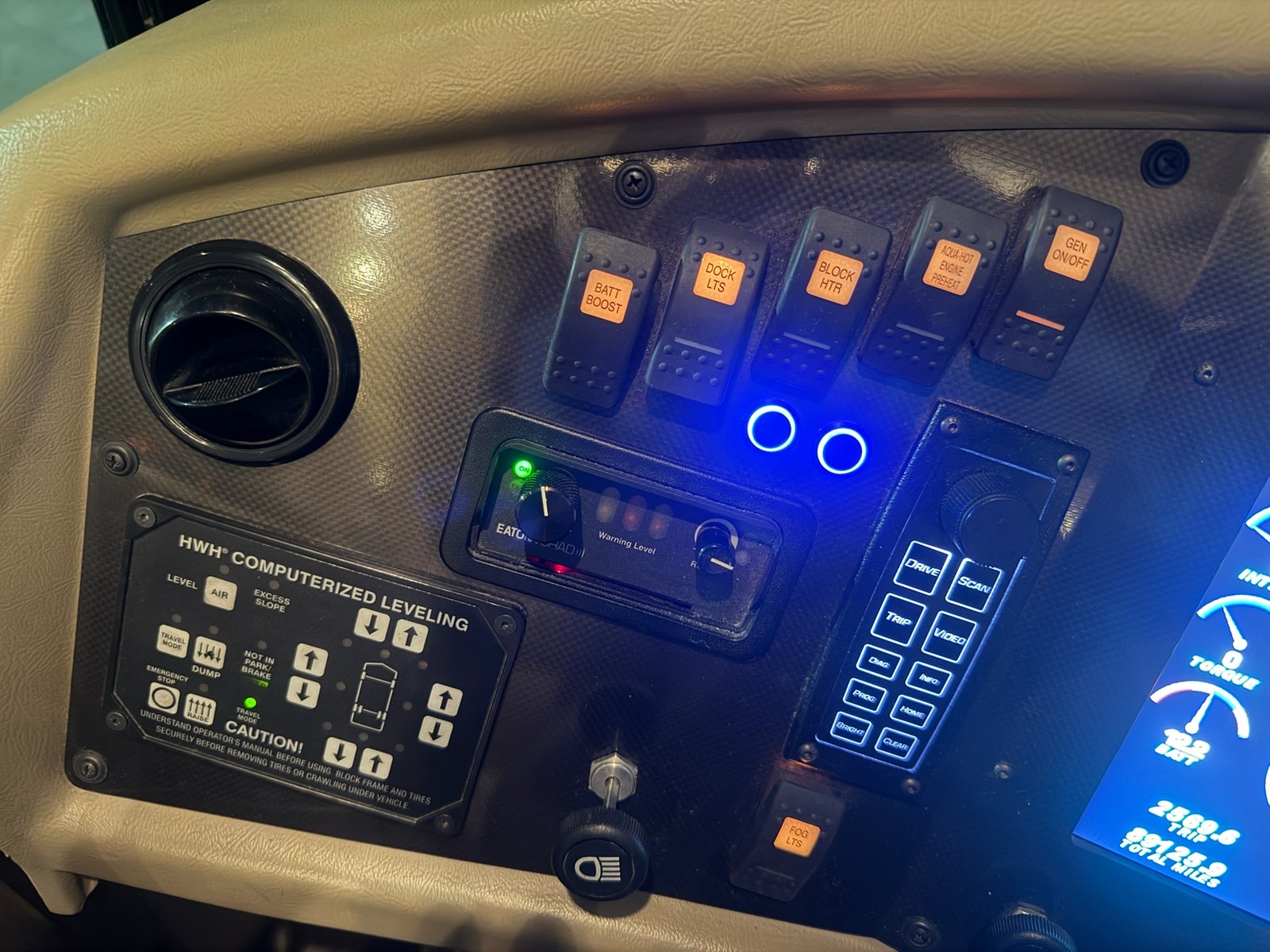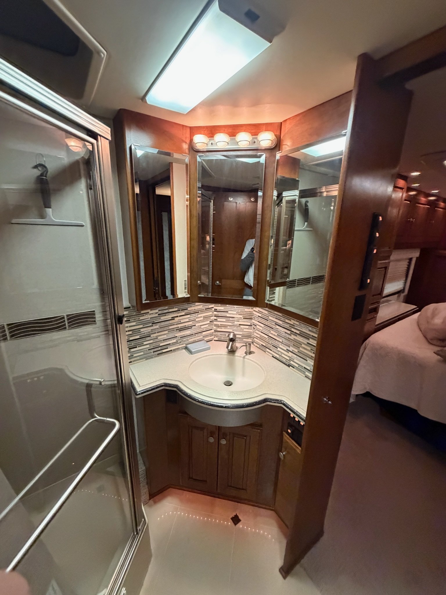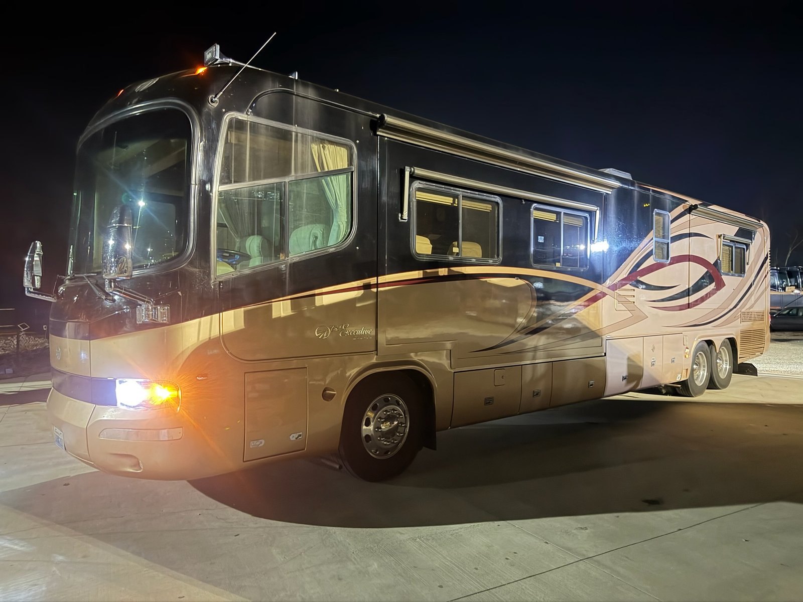 2005 Monaco Executive 43PDQ cummins ISM diesel 500HP, air ride, three roof airs with heat pumps. 4 slide outs, washer dryer combo, king size bed, closet and lots of wardrobe storage. Two extra chairs for the dinette.