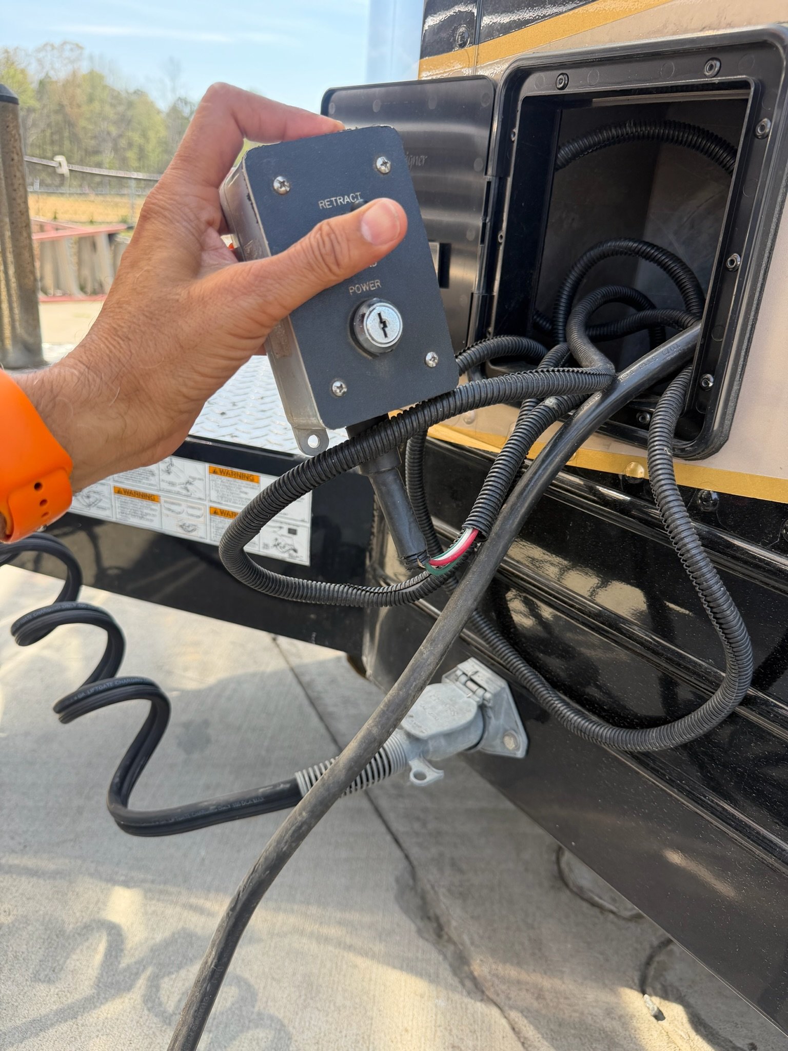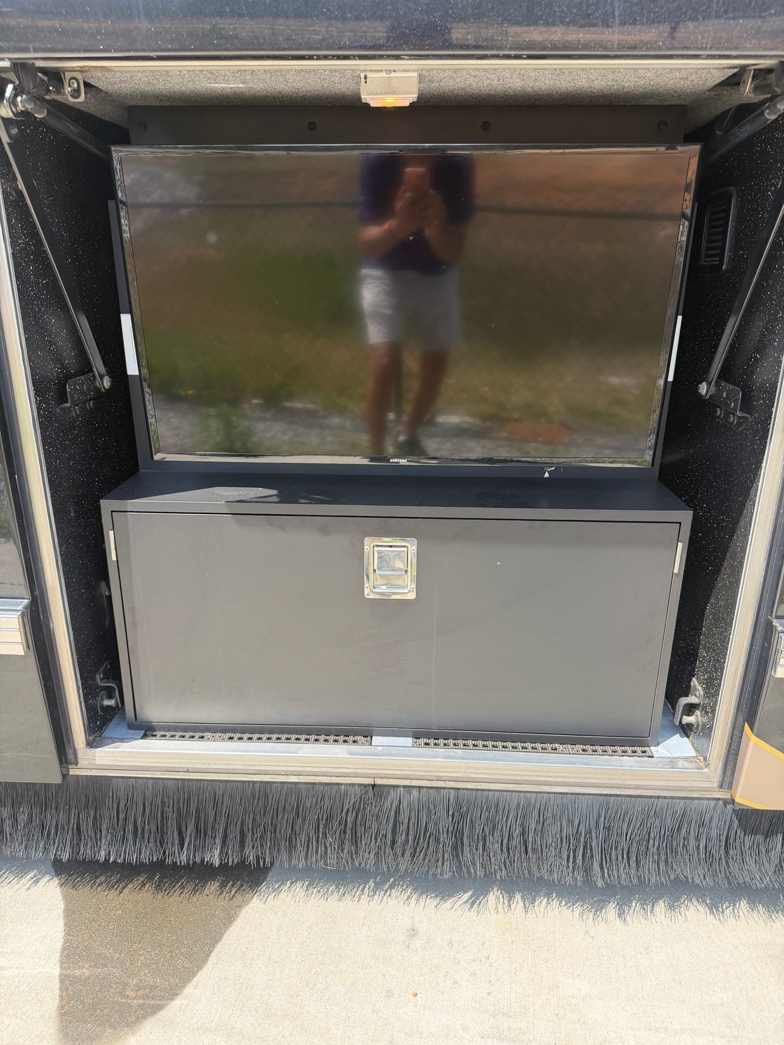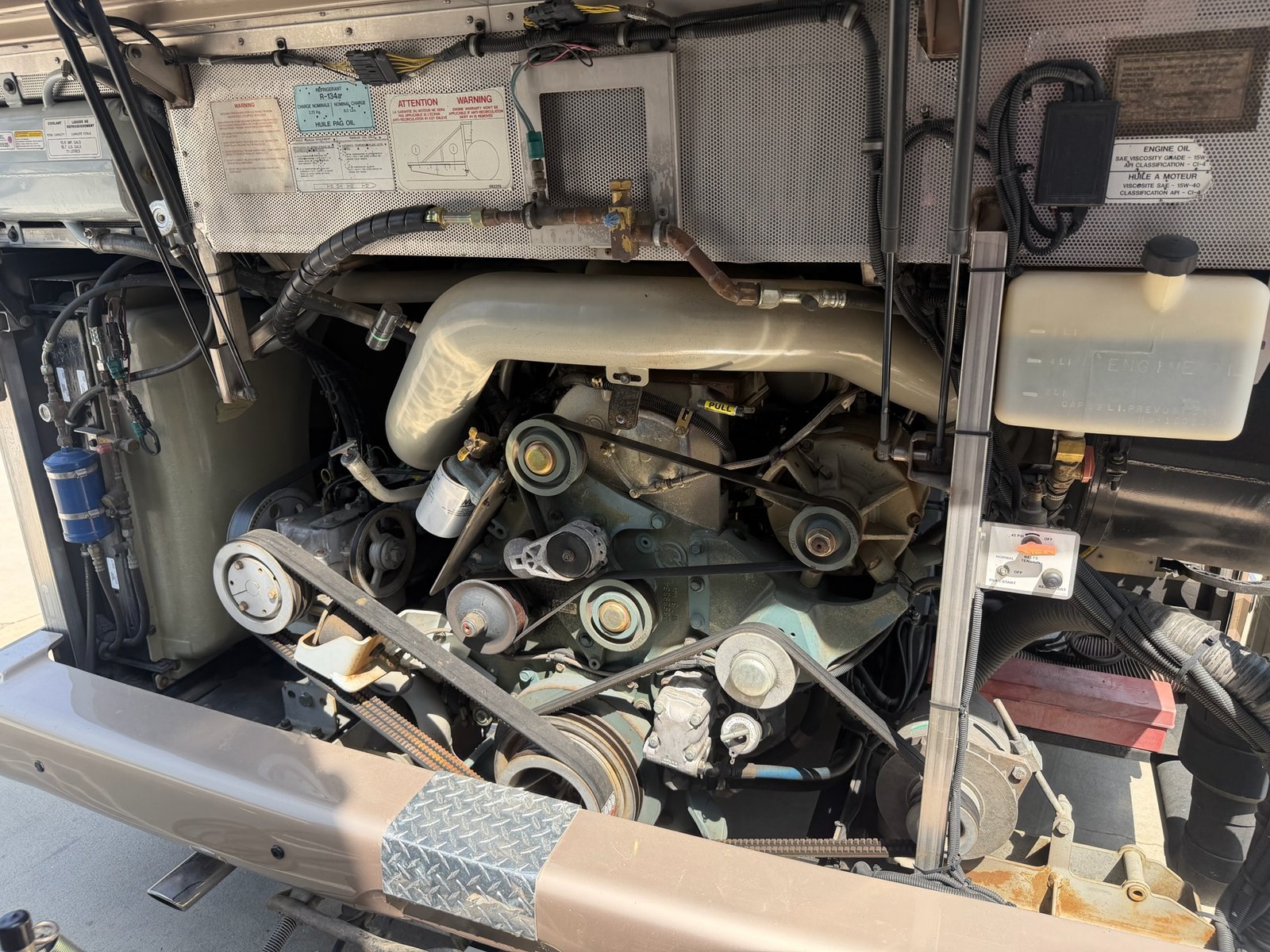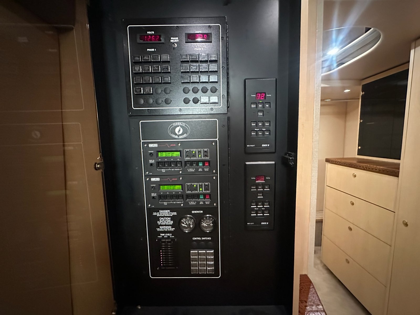 This is absolutely beautiful. Featherlite conversion Bus has low miles and a matching Featherlite aluminum stacker trailer. It’s got a double slide floor plan with leather everywhere in excellent condition, as well as stunning tile flooring and custom grout. Fiber optic accent lights and a custom tiled shower.